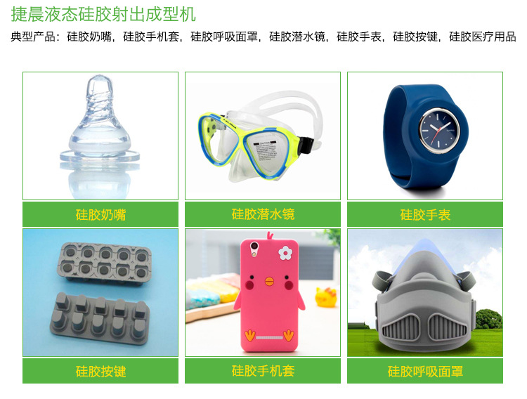 捷晨固體蛙膠射出來制作機 舉例成品:蛙膠制品奶嘴,蛙膠制品華為手機套,蛙膠制品氣息呼吸面罩,蛙膠制品潛水鏡,蛙膠制品石英表,蛙膠制品功能鍵,蛙膠制品整形器具