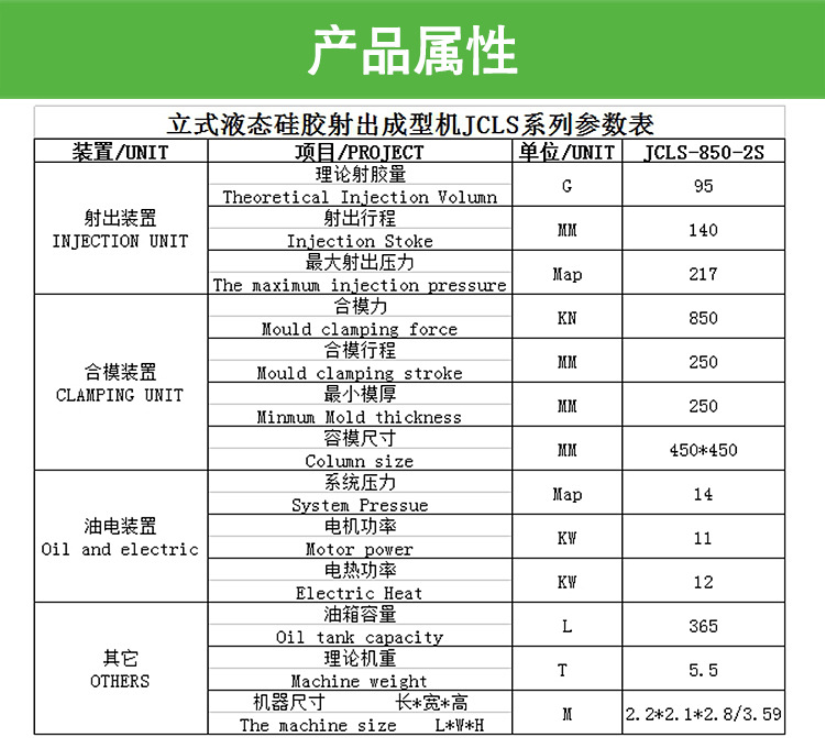 85噸立式液態硅膠射出成型機的產品特點: